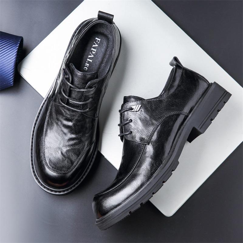 รองเท้าหนังหัวโตสำหรับผู้ชายรองเท้านักธุรกิจแบบทางการรองเท้าพื้นหนา