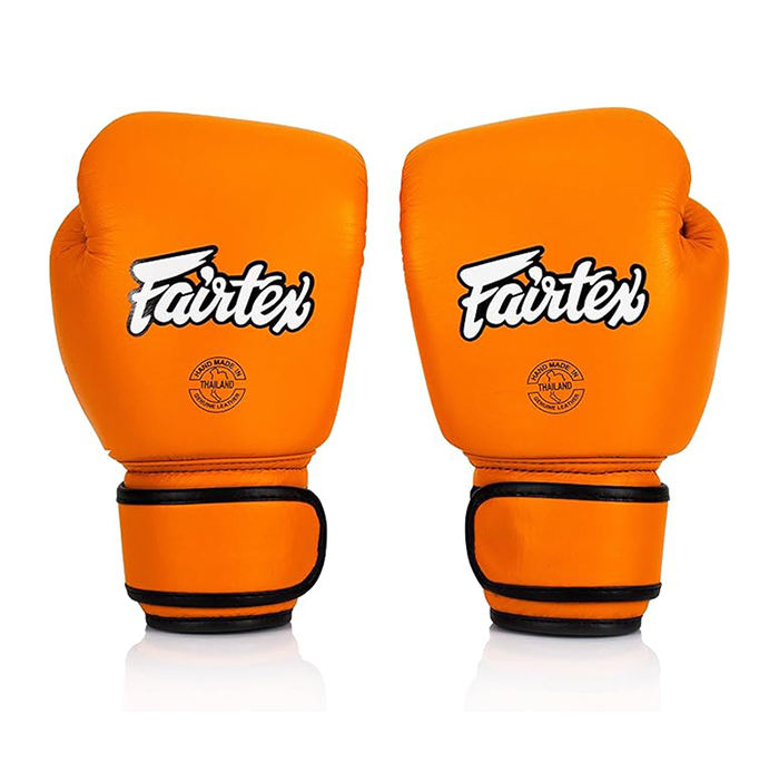 ถุงมือชกมวยมวยไทยสำหรับผู้หญิงถุงมือชกมวยแบบแฟร์เท็กซ์สีส้มพิมพ์ลายได้ตามต้องการ