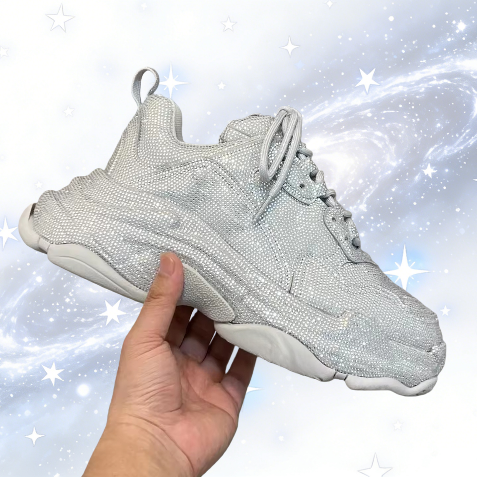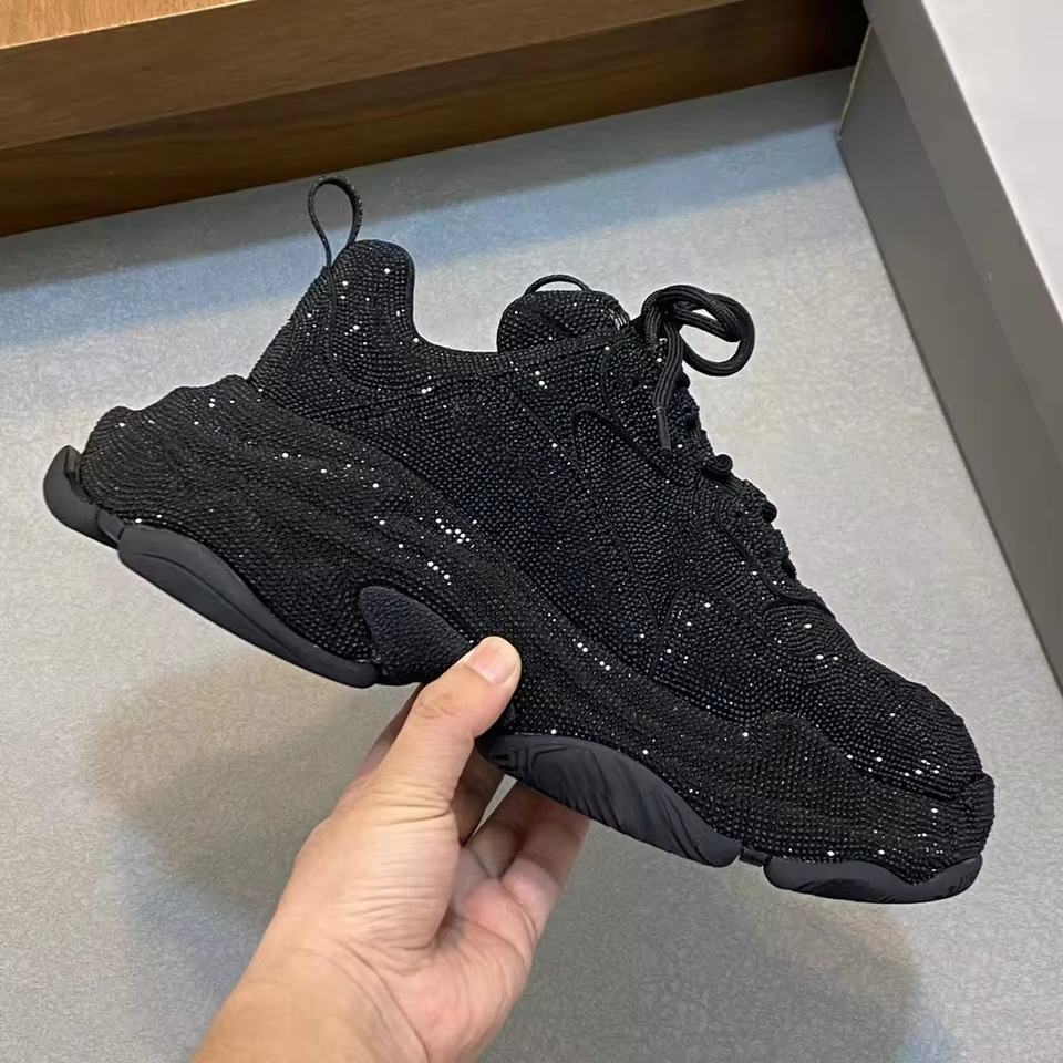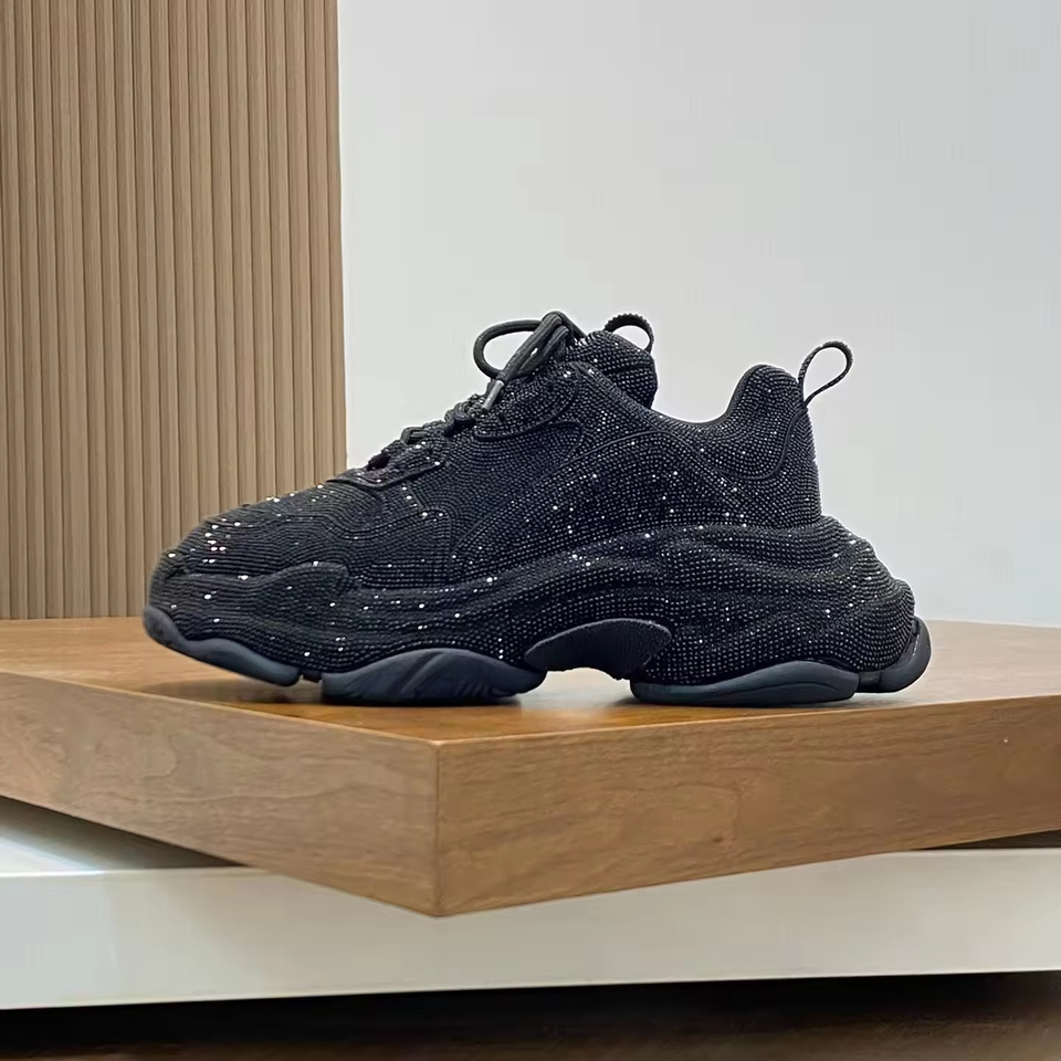รองเท้าผ้าใบหนังแท้คุณภาพสูงแบบผูกเชือก กันลื่น ดีไซน์เพชร พื้นหนา สำหรับผู้ชายและผู้หญิง รองเท้าลำลองสำหรับเดิน