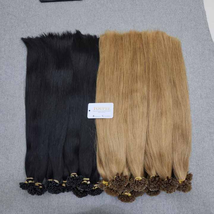 ผมต่อปลายแบนปลายแบน100% ผมมนุษย์ผมต่อปลายแบนสำหรับผู้หญิงสไตล์ธรรมชาติ
