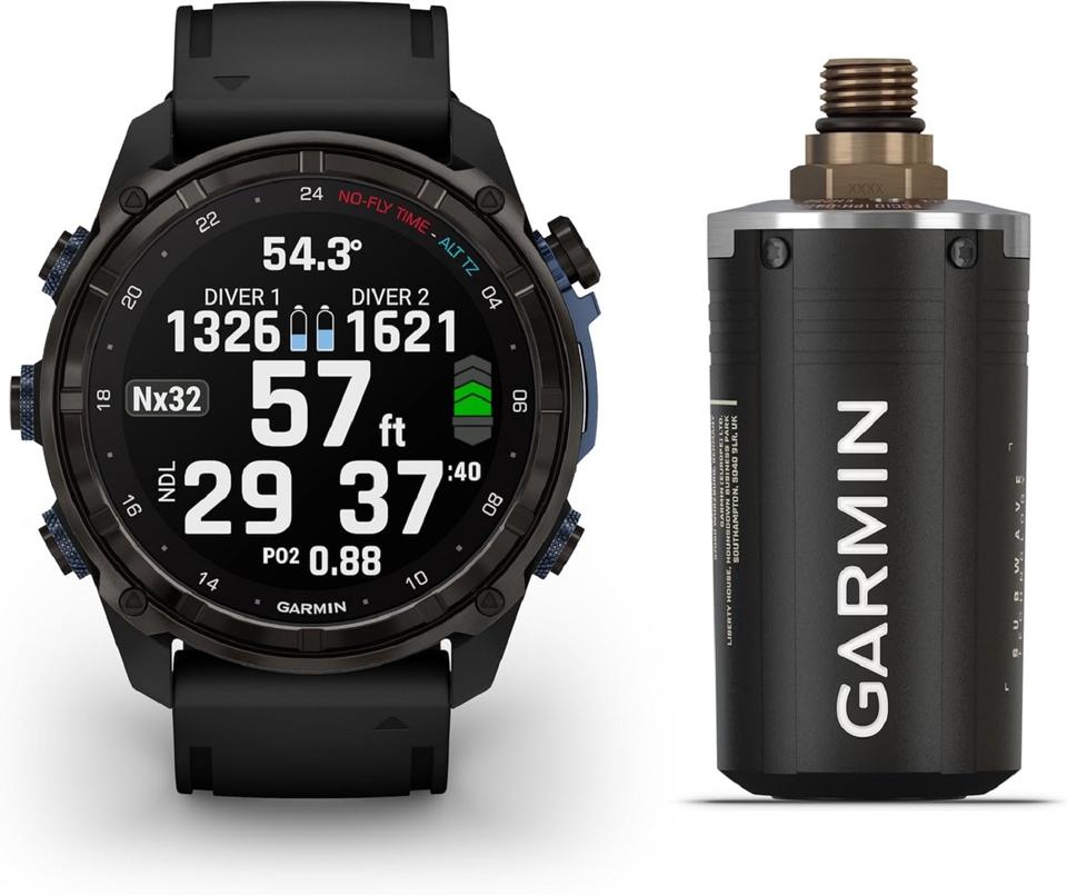Top Quality Garmins Descent Mk3i 51 Mm, Carbon Gray DLC Titanium Watch with Black Silicone Rubber Band and T2 Transceiver