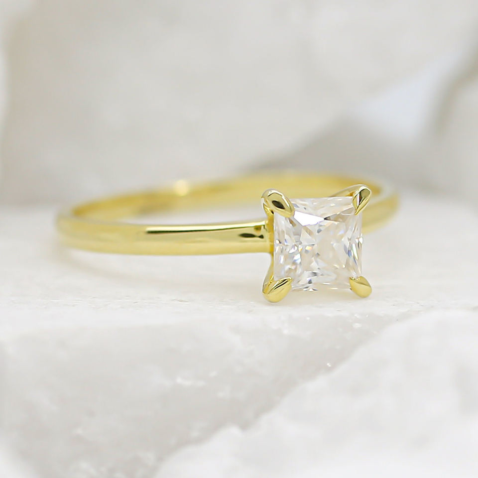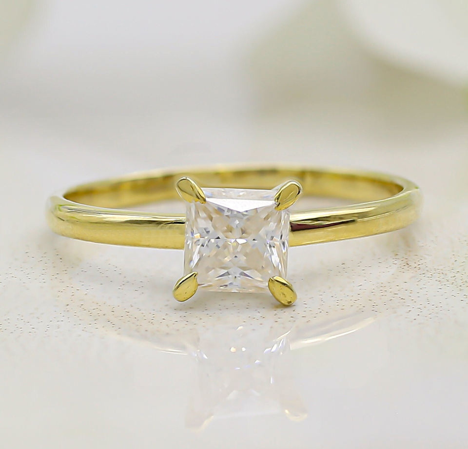 High Quality 925 Sterling Silver Topaz Wedding Band Ring 8mm Square Brilliant Cut Diamond Gold Plated Prong Setting Minimalist