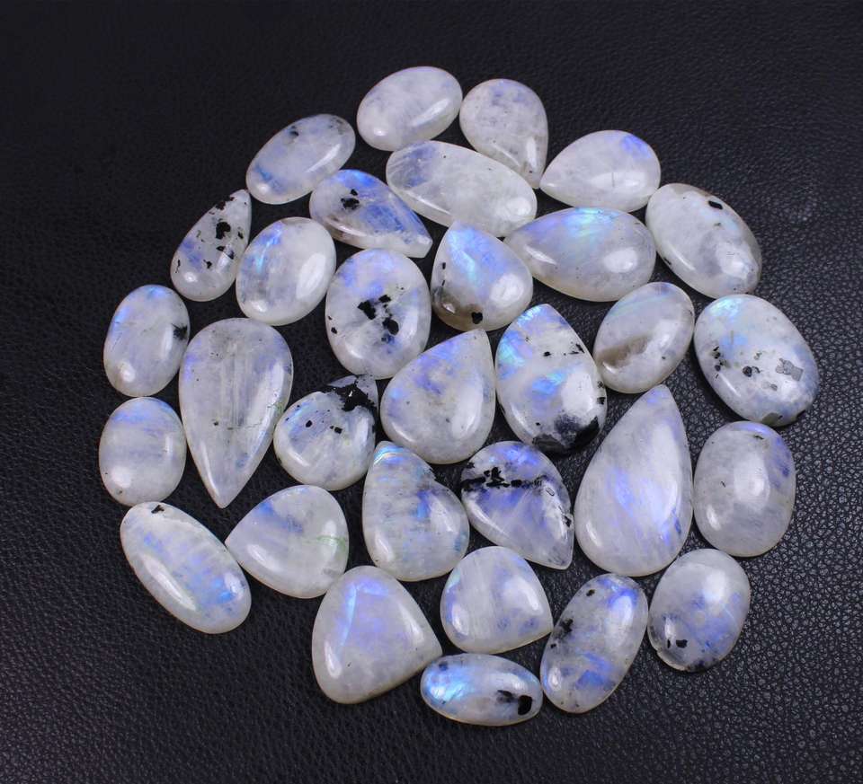 หินมูนสโตนสีรุ้งแท้หลายรูปทรงอัญมณีหลวมขัดเงาสูงสำหรับทำจี้ชั้นดีทำมือ
