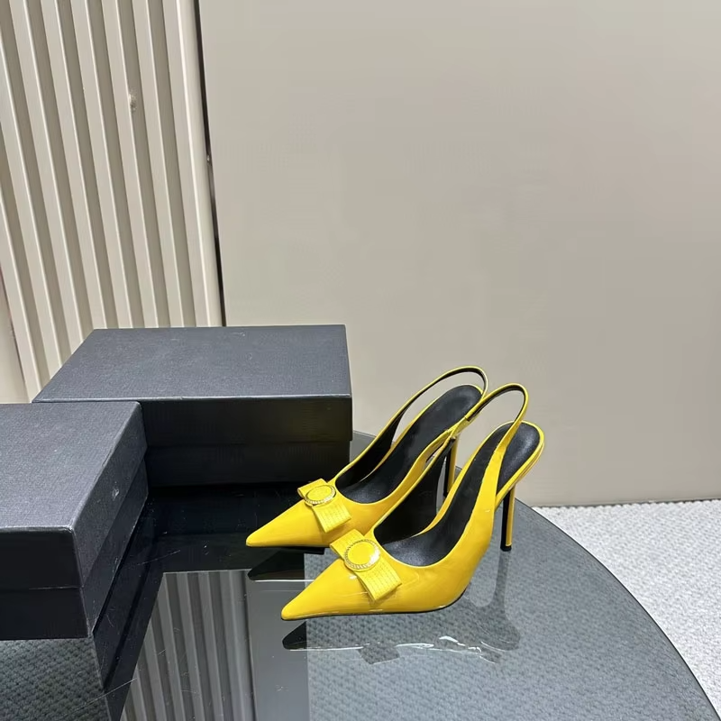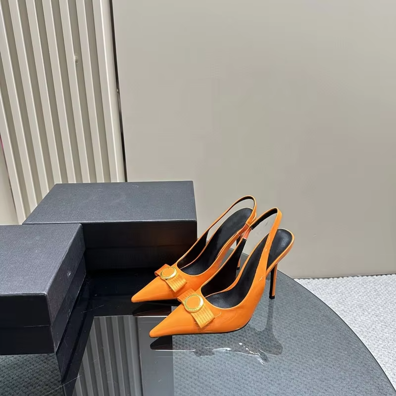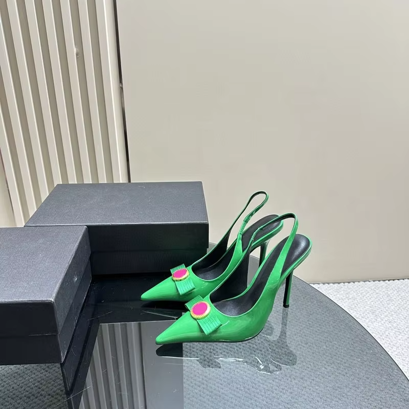 รองเท้าหนังแท้คุณภาพสูงสำหรับผู้หญิง ดีไซน์เซ็กซี่ แฟชั่นฤดูร้อน แบรนด์ดัง สีชมพู รองเท้าส้นสูง