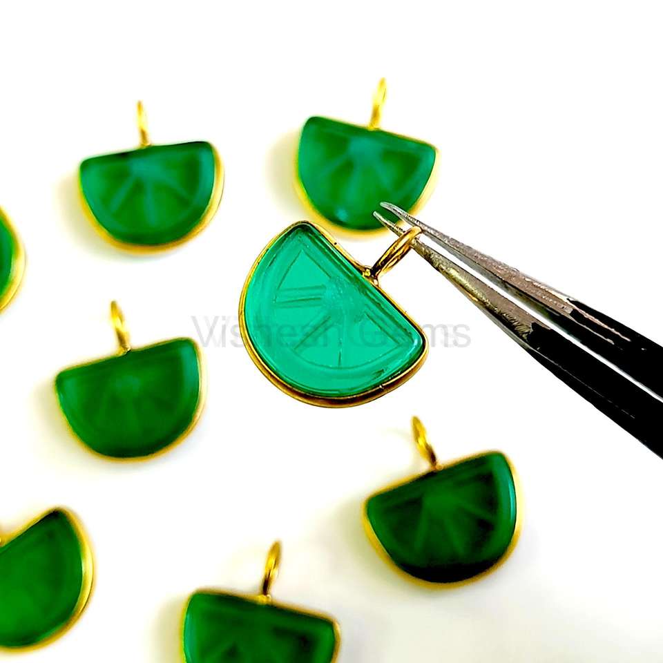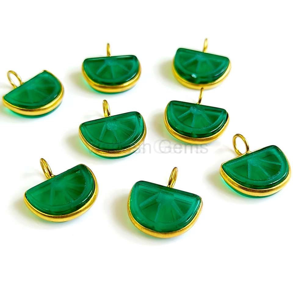 จี้อัญมณีแกะสลักรูปแตงโมโอนิกซ์สีเขียวจี้อัญมณีแกะสลักหินโอนิกซ์จี้เสน่ห์ชุบทอง925เงินสเตอร์ลิง