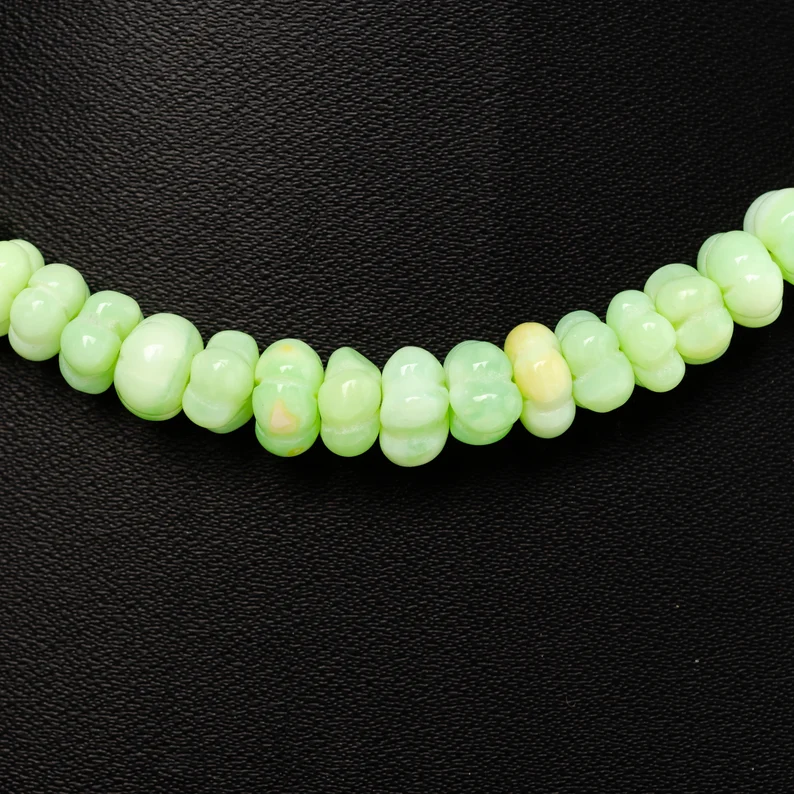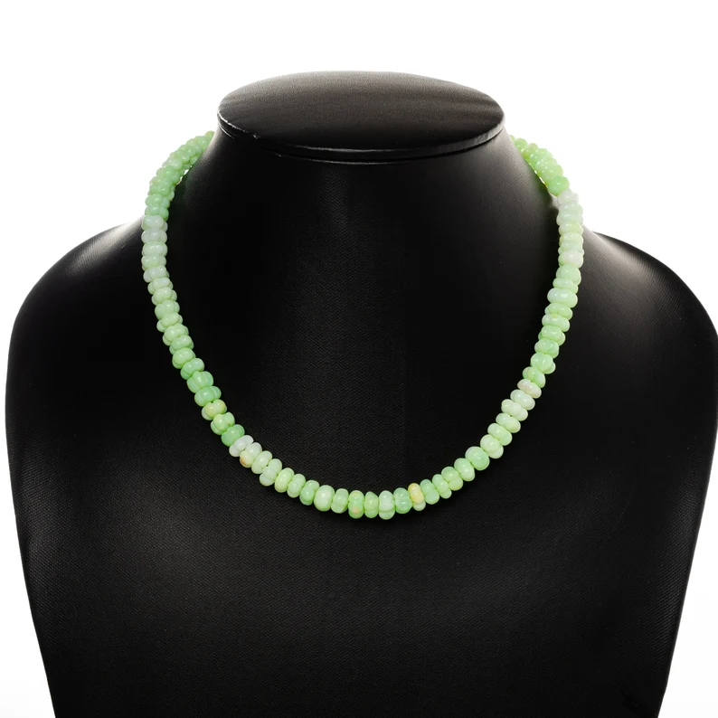 ชื่อผลิตภัณฑ์:สร้อยคอลูกปัดสีเขียวโอปอลแตงโมเรียบ