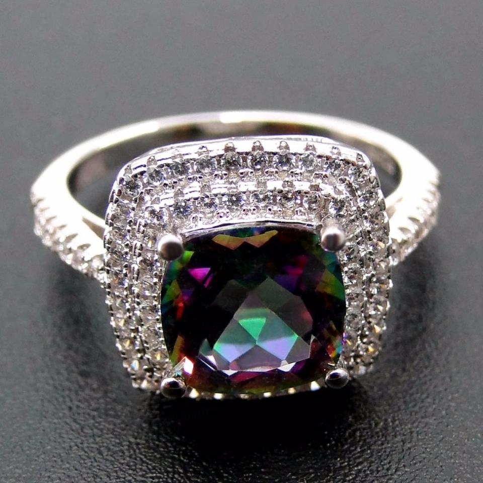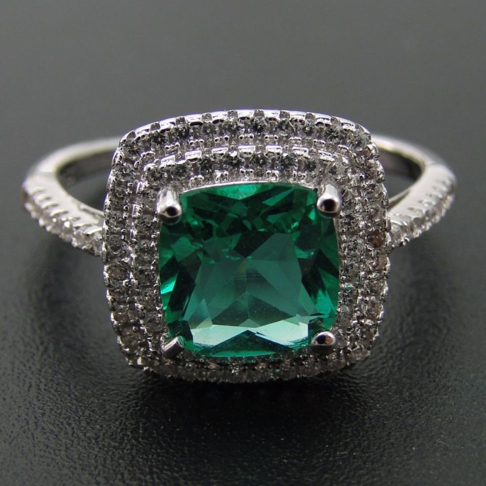 แหวนสปิเนลสีเขียวคุณภาพสูง เงินแท้ 925 ประดับเพชรซิคอน