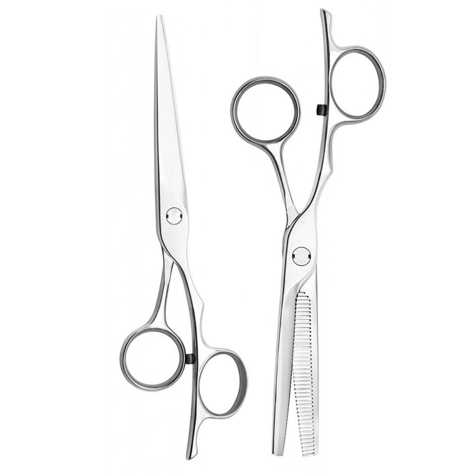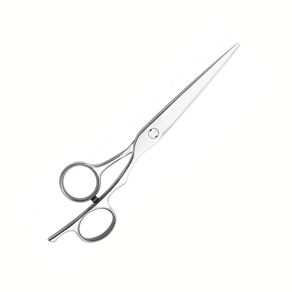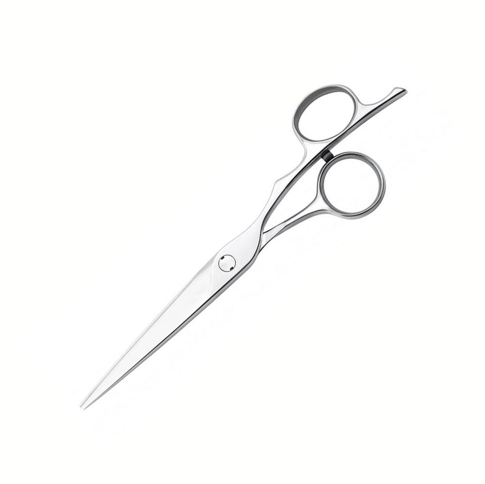 กรรไกรตัดผมใบมีดสแตนเลสสตีลขัดเงาพร้อมที่วางนิ้วมือ