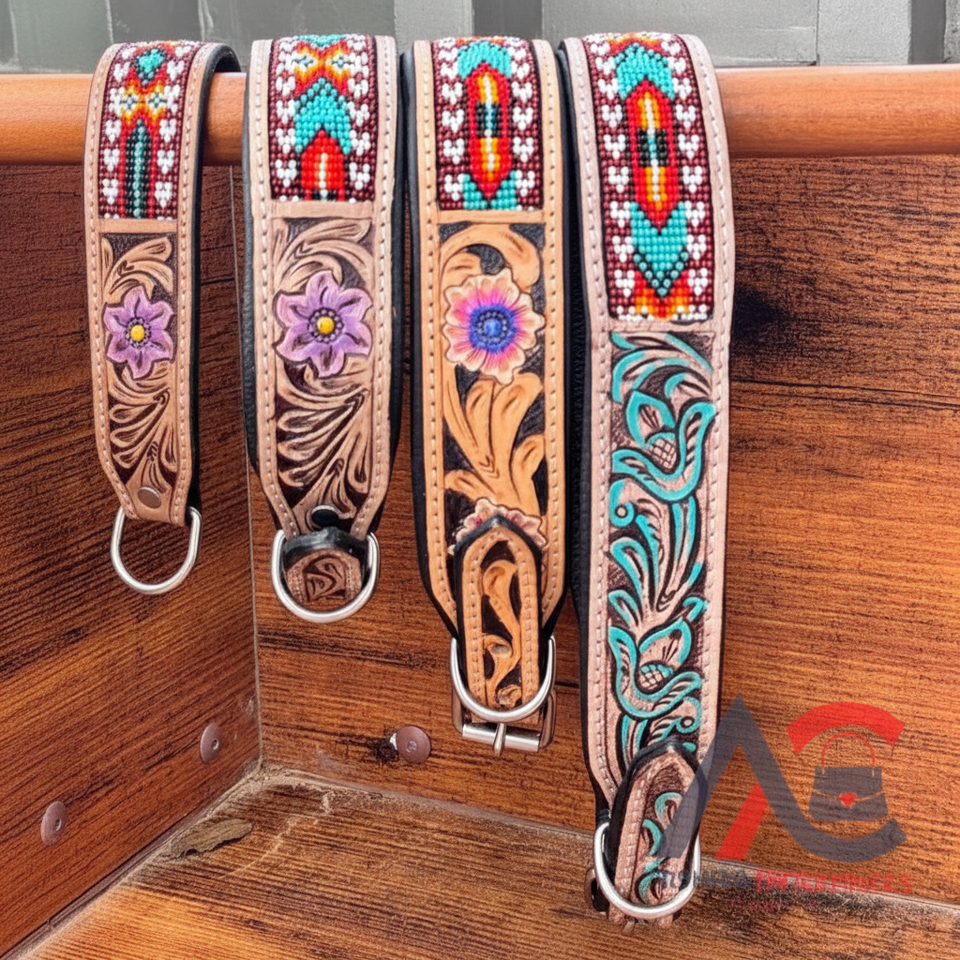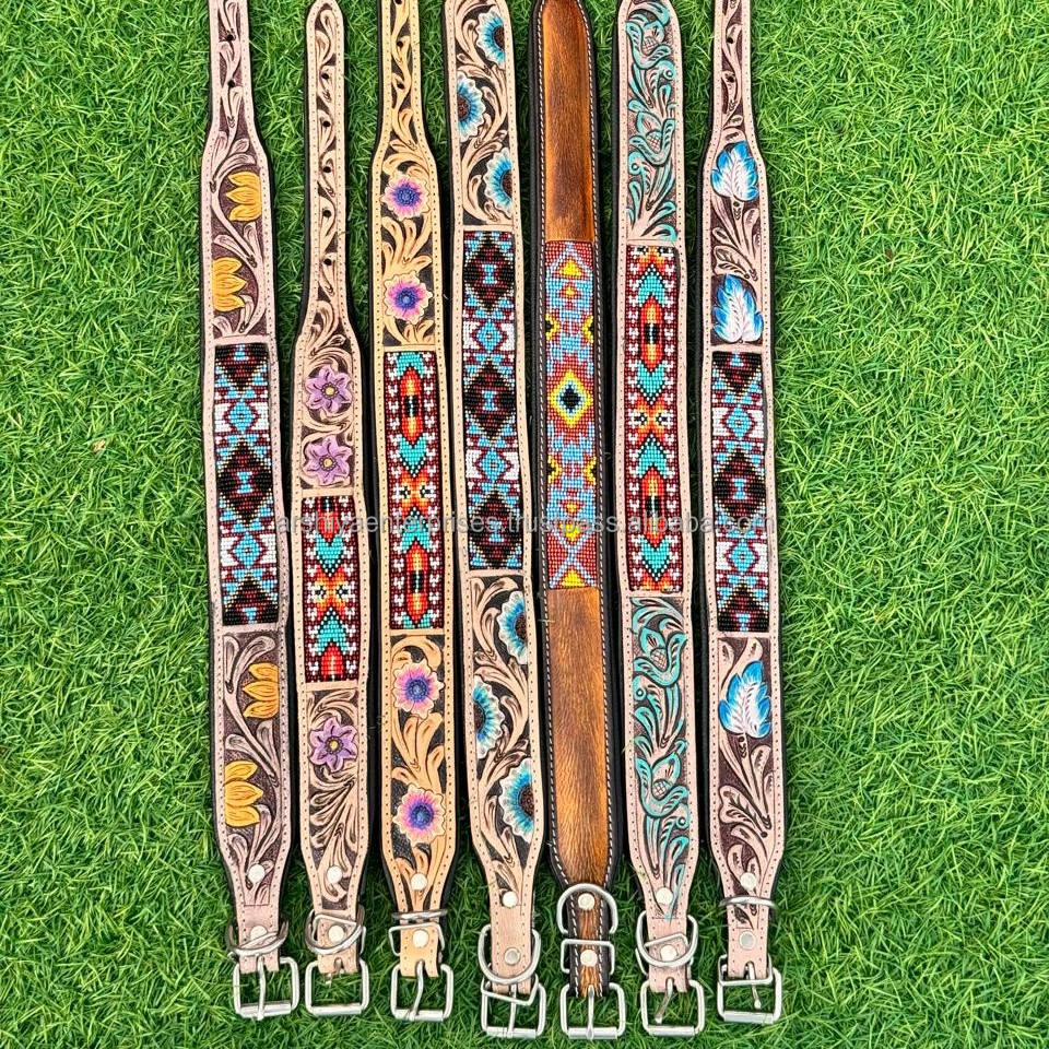 ปลอกคอสัตว์เลี้ยงหนังแท้ประดับลูกปัดทำมือ