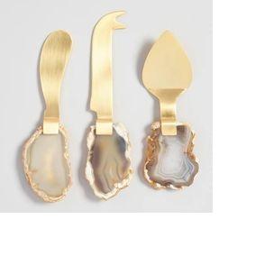 ชุดมีดหั่นชีสสแตนเลส3ชิ้นทำด้วยมือพร้อมด้ามหินอ่อนและไม้สำหรับเสิร์ฟชีสอาหารเช้า