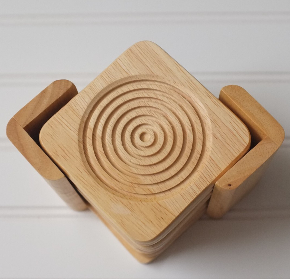 ที่รองแก้วไม้มะม่วงงานหัตถกรรมคุณภาพสูงถาดรองแก้วทรงกลมพิมพ์ลายตามสั่ง