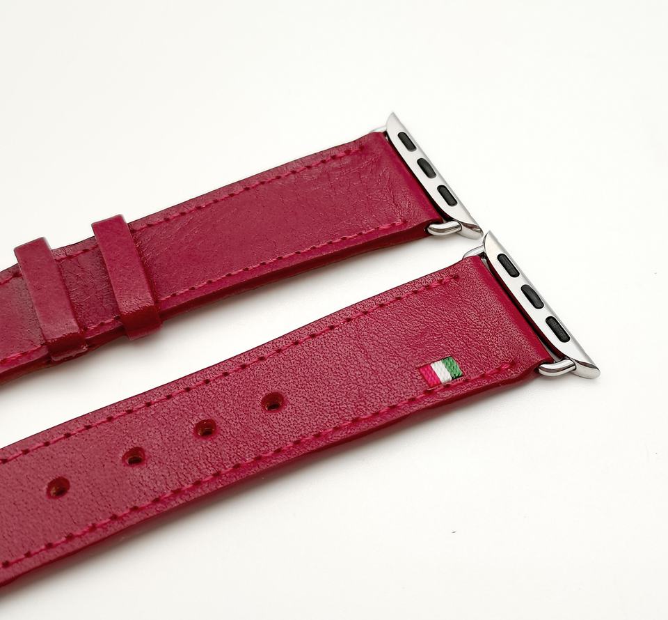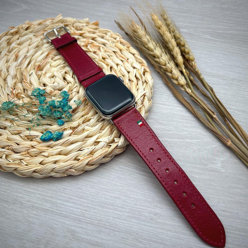 Castello คุณภาพสูงหรูหราสไตล์อิตาเลียนลายผักสีแทนสายนาฬิกาแอปเปิ้ลเบอร์กันดีโพลีเอสเตอร์ซับในกระเป๋าสตางค์แฮนด์เมด
