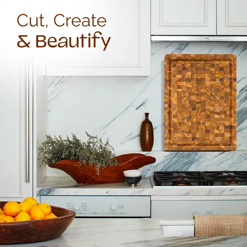เขียงไม้สักทรงสี่เหลี่ยมคุณภาพสูง งานแฮนด์เมด สไตล์โมเดิร์น หนา 1.5 ซม. สำหรับหั่นและเสิร์ฟ บรรจุภัณฑ์แบบรวม