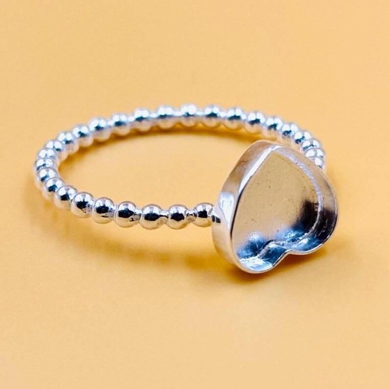 แหวนขอบรูปหัวใจคุณภาพสูงตั้งค่าแหวนเงินสเตอร์ลิงฐานว่างทำจากเรซินเบรอชชาทรงหลังเบี้ยทำด้วยตัวเองเครื่องประดับ jgj