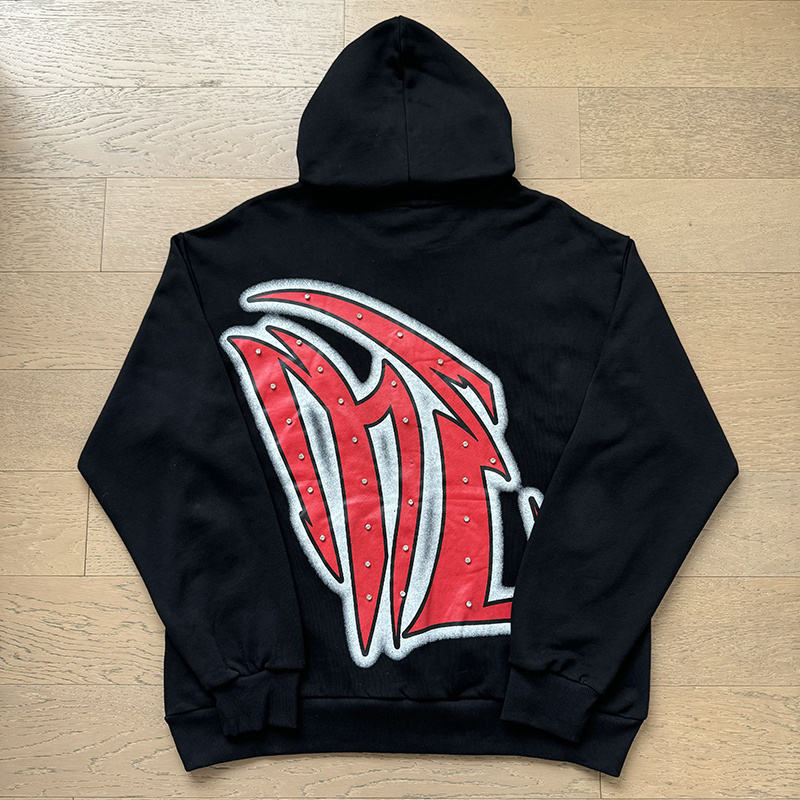 ชุดเสื้อคาร์ดิแกนมีซิปเสื้อมีฮู้ดสำหรับผู้ชายและผู้หญิงผ้าคอตตอน100% ผสมอารมณ์ไฮสตรีทประดับเพชร