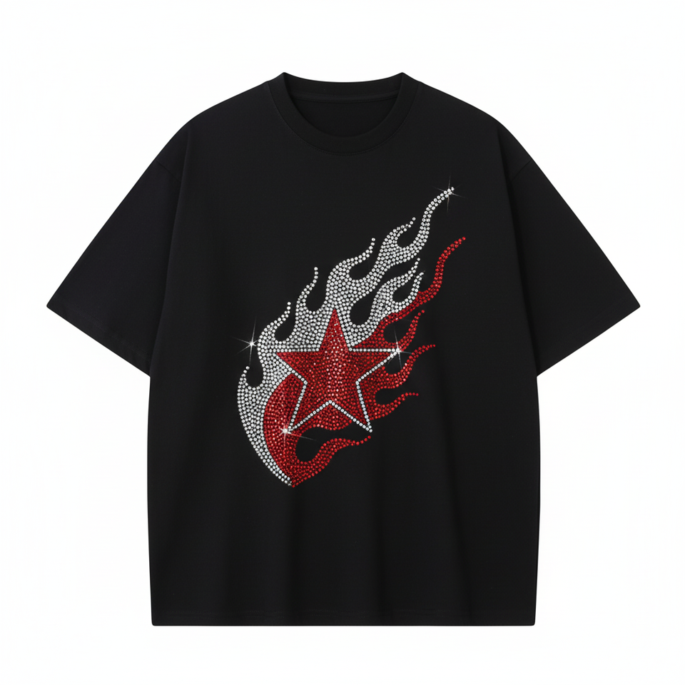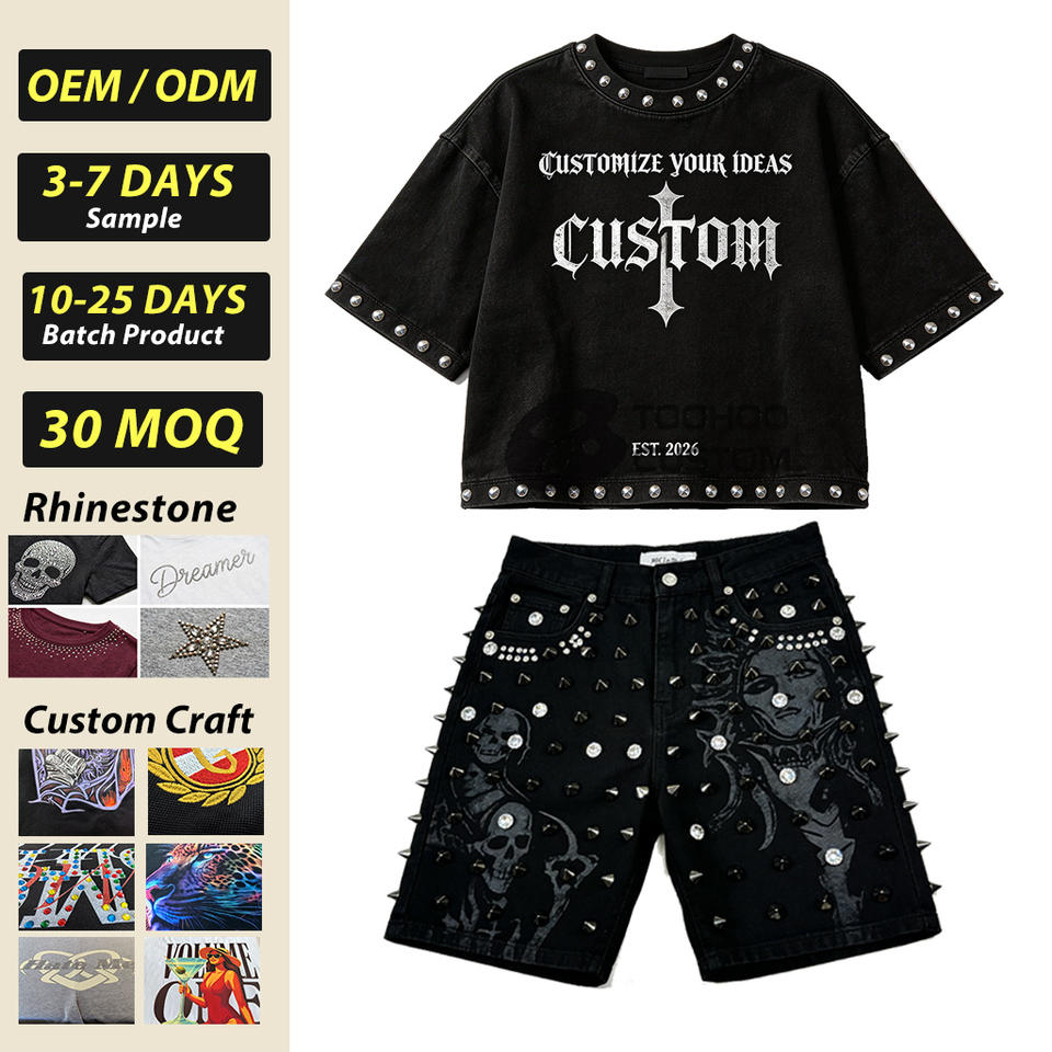 เสื้อยืดสตรีทแวร์ทรงโอเวอร์ไซส์ คอเสื้อพิมพ์ลายโลโก้ด้วยคริสตัลสั่งทำพิเศษสำหรับผู้ชาย ผ้าคอตตอนคุณภาพสูง 100% หนัก 300 กรัม ทรงบ็อกซี่ฟิต