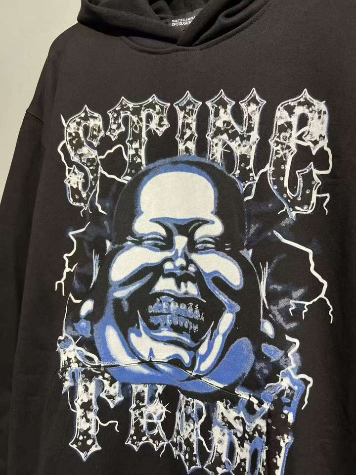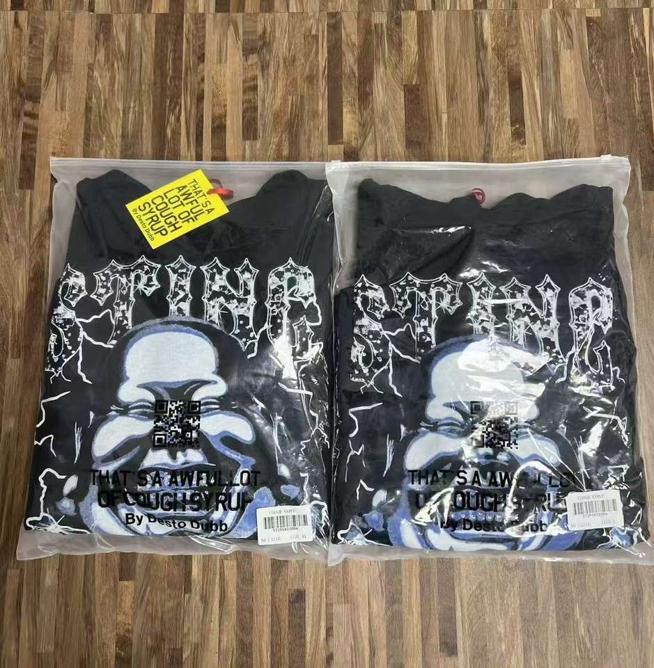 เสื้อฮู้ดดี้คุณภาพสูง น้ำหนักมาก ลาย "น้ำเชื่อมแก้ไอเยอะมาก" ผ้าฝ้าย 100% เสื้อฮู้ดดี้แบบสวมหัวสำหรับผู้ชาย สั่งทำได้