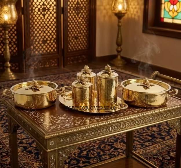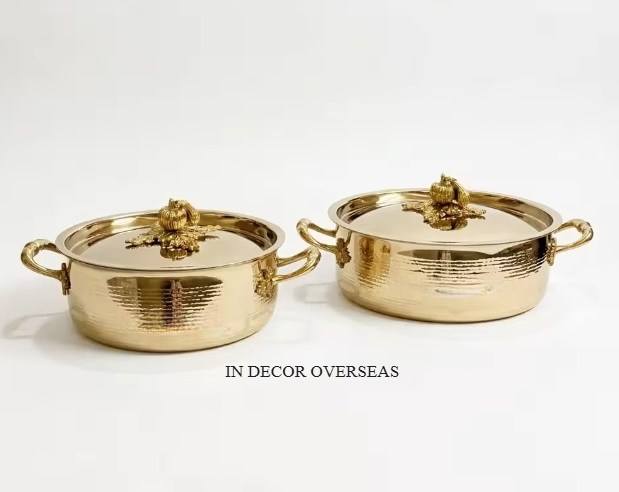 หม้อตุ๋นรัฟโฟนีคุณภาพสูง เกรดพรีเมียม ชุบทองบนสแตนเลสสตีล ดีไซน์หรูหรา ตีขึ้นรูปด้วยมือ ใช้ได้กับเตาแก๊สและเตาแม่เหล็กไฟฟ้า เหมาะสำหรับงานแต่งงานและตกแต่งบ้าน