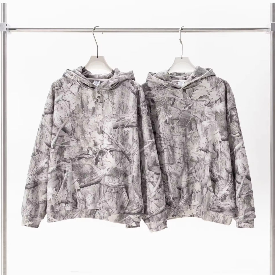 เสื้อฮู้ดดี้คุณภาพสูง สตรีทแวร์แบบสั่งทำพิเศษ พิมพ์ลายพรางต้นไม้ดิจิทัลทั่วตัว เสื้อฮู้ดดี้รักษ์โลกสำหรับผู้ชาย