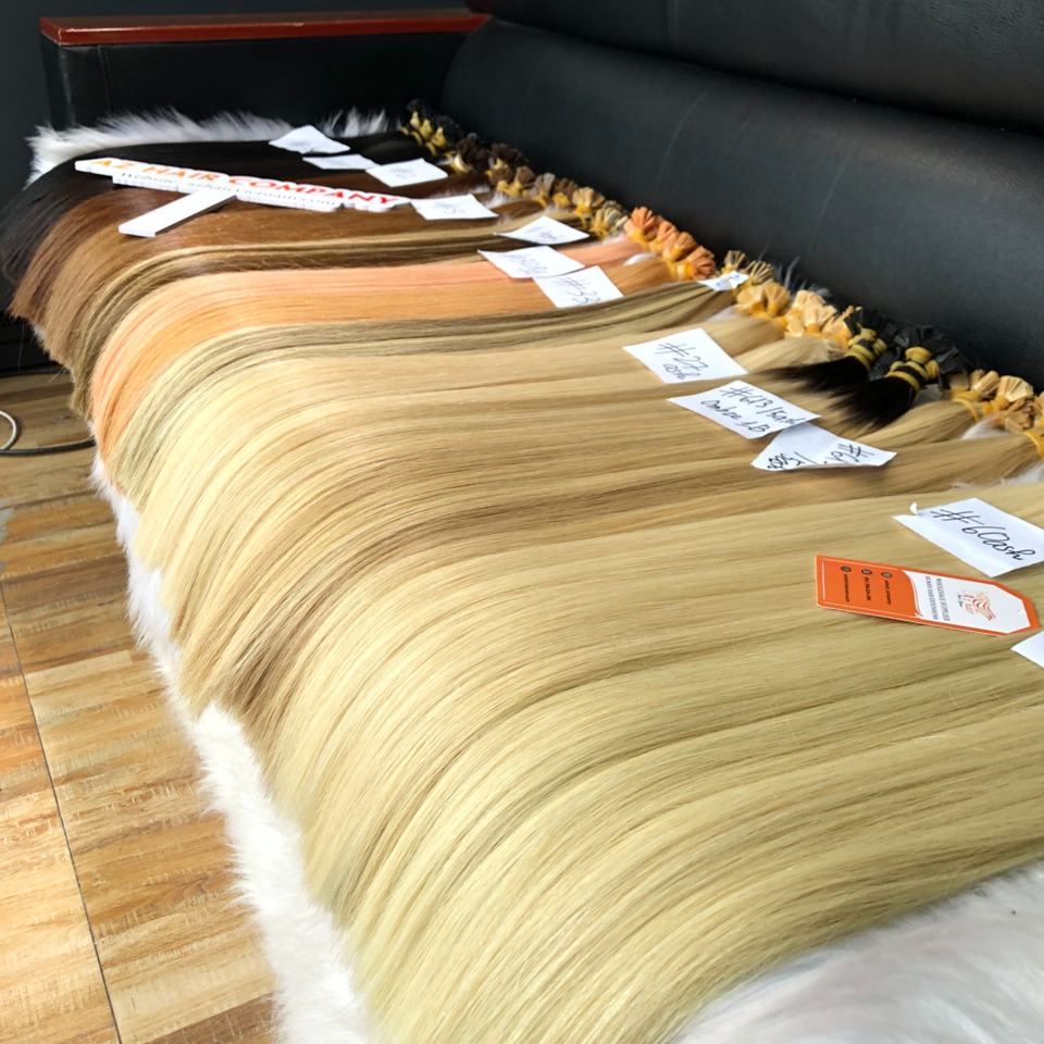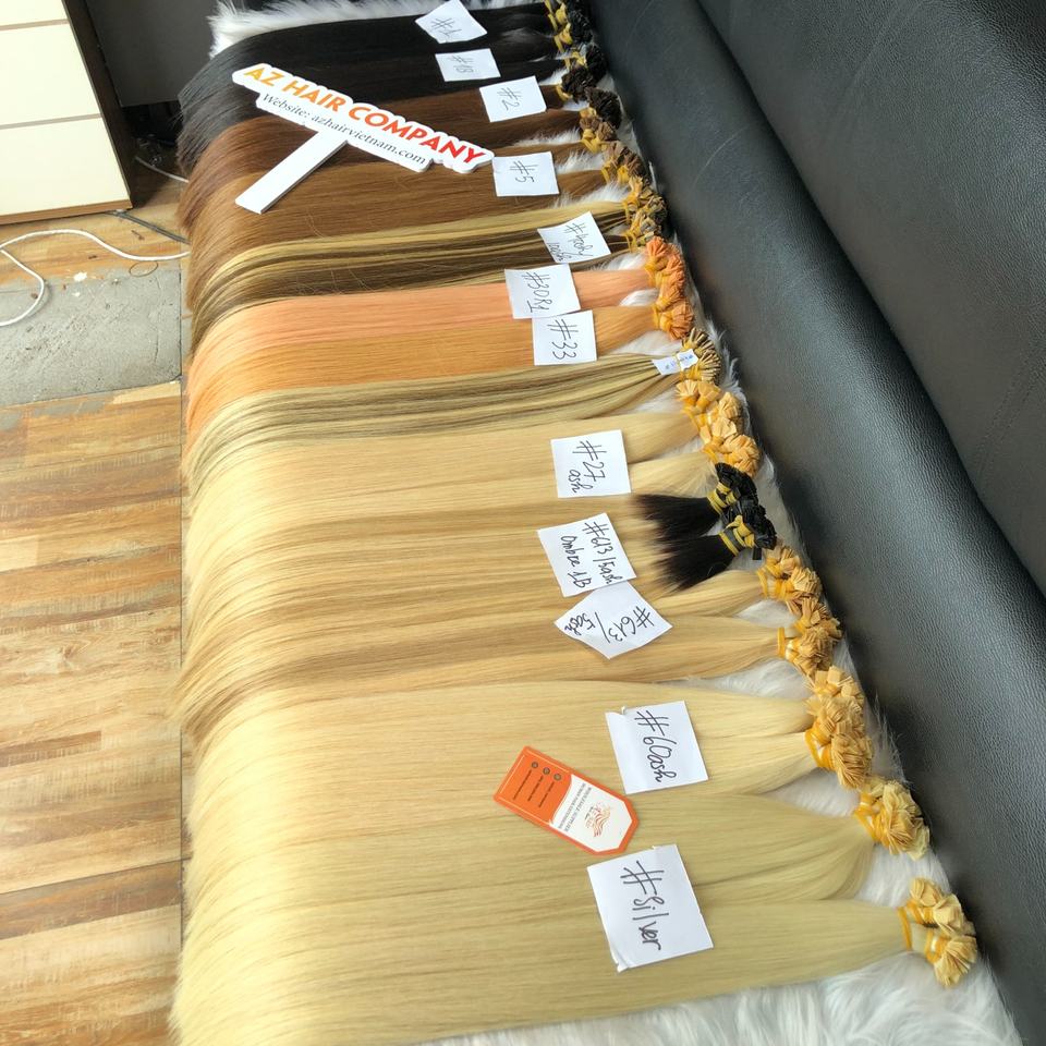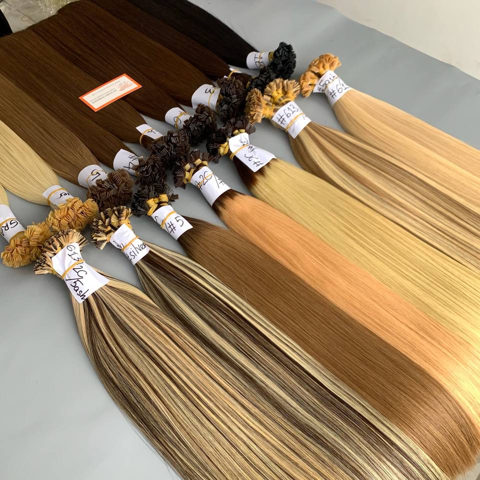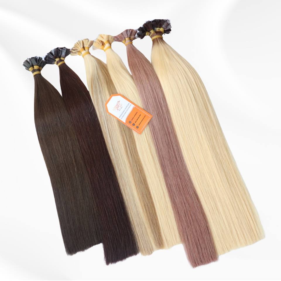 ต่อผมแท้คุณภาพสูงแบบเคราติน ปลายแบน ขายส่ง ผมสองชั้น 100% ผมเวียดนามดิบ ไม่ผ่านการแปรรูป