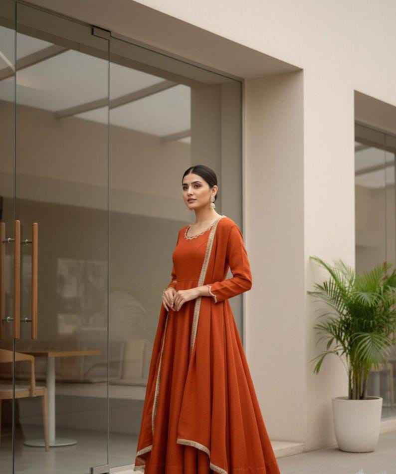 ชุดเดรส Anarkali สไตล์บูติกคุณภาพสูงสำหรับผู้หญิง ออกแบบโดยดีไซเนอร์ชาวอินเดียและปากีสถาน เหมาะสำหรับงานปาร์ตี้ พร้อมงานปักด้วยเครื่องจักร ชุดสัลวาร์ คามีซ