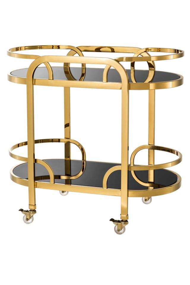 โต๊ะแบบมีล้อลากทำจากโลหะสแตนเลสสีทองสำหรับโรงแรมและร้านอาหาร