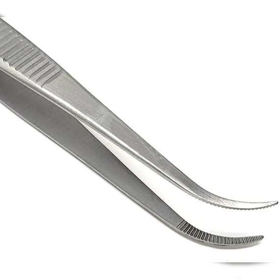 Iris Forceps, 11.5 cm / 4.5", angled.