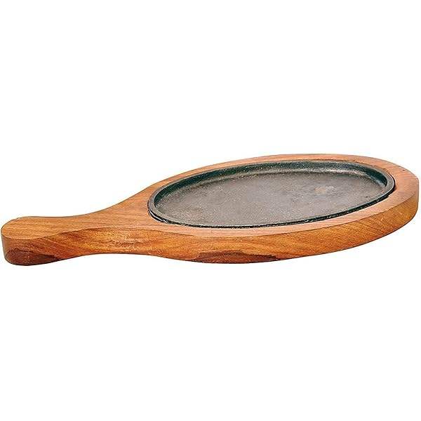 จานเหล็กร้อนพร้อมฐานไม้สำหรับใช้ในโรงแรมและร้านอาหารจานร้อนสำหรับเสิร์ฟพิซซ่าราคาถูก