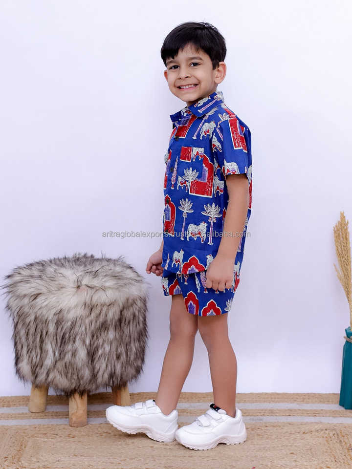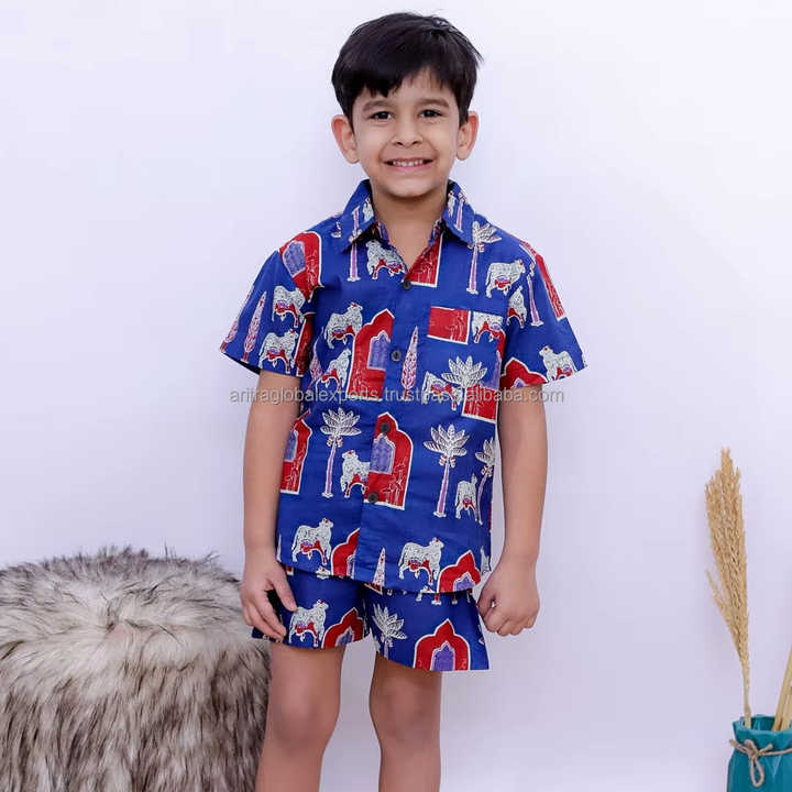 ชุดเสื้อผ้าเด็กผู้ชายผ้าฝ้ายแขนสั้นลำลองสีพื้นสำหรับเด็ก1-12ปี