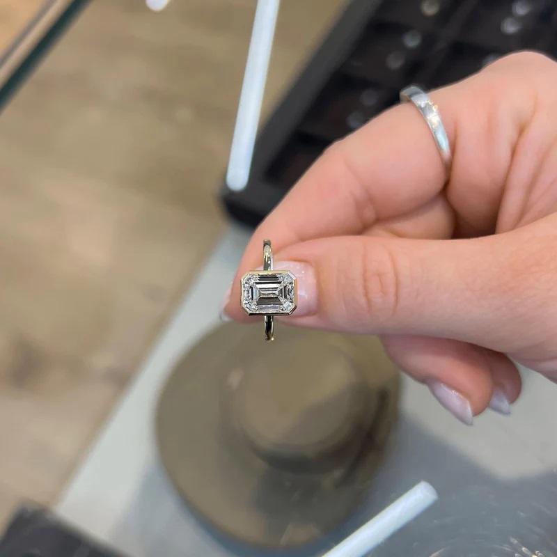 แหวนหมั้นและแต่งงานเพชรโมอิสซาไนต์คุณภาพสูง 1.50 กะรัต จาก Iced Jewelz ตัวเรือนทองคำขาว 14k ทรงเหลี่ยมมรกต ประดับแบบ Prong Setting