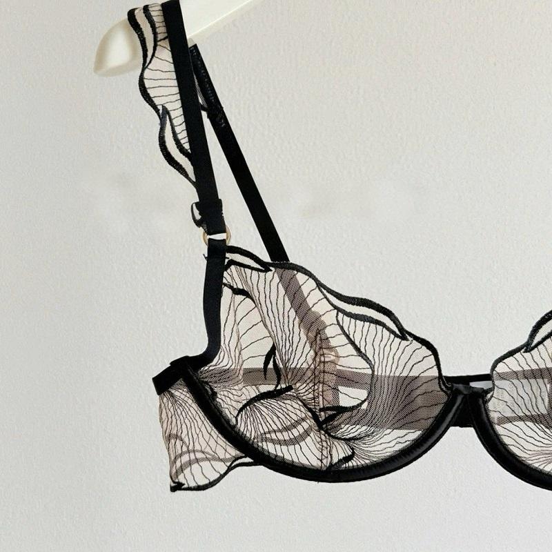 ชุดชั้นในลูกไม้คุณภาพสูง เซ็กซี่ โปร่งใส พร้อมสายรัดถุงน่อง