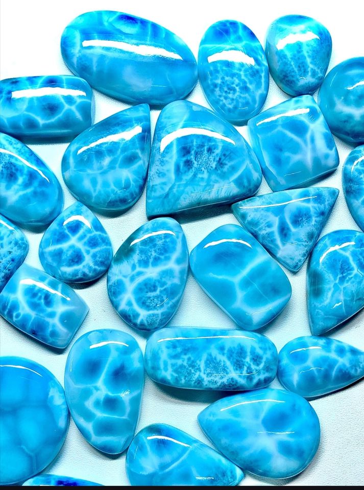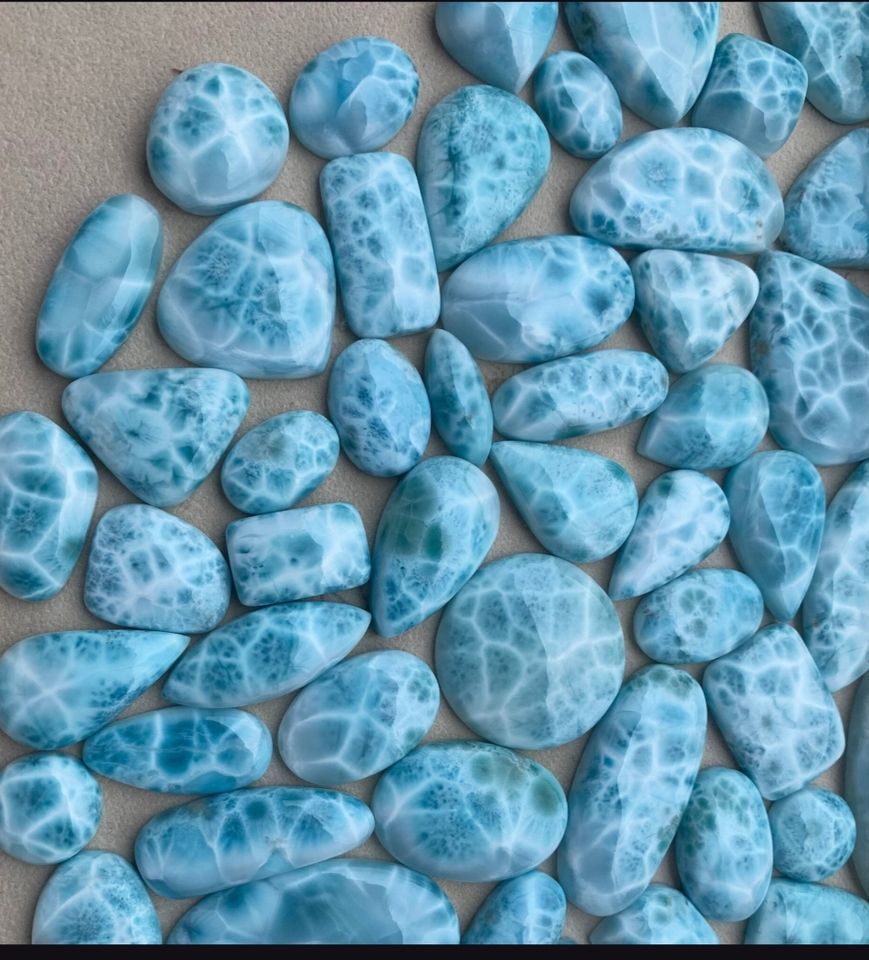 พลอยลาร์ิมาคุณภาพสูง พลอยลาร์ิมาธรรมชาติ รูปทรงผสม แบบคาโบชอง ขัดเงา หินกึ่งมีค่าสำหรับทำเครื่องประดับ