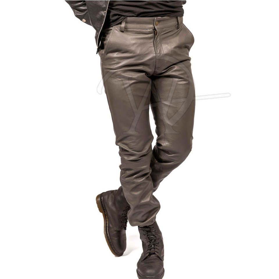 กางเกงหนังของผู้ชายแบบตรงน้ำหนักเบากางเกงหนังดีไซน์ตามสั่งโลโก้ของคุณเอง