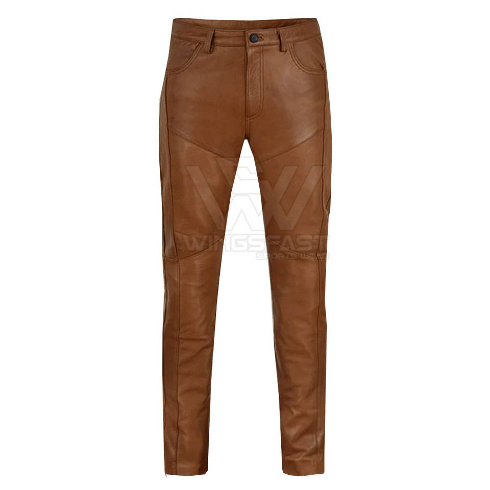 กางเกงหนังผู้ชายขายส่ง ทรงกลาง ปิดด้วยกระดุม น้ำหนักเบา ดีไซน์ลำลอง รับทำโลโก้