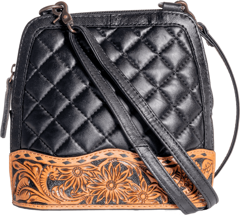 กระเป๋าหนังแท้คุณภาพสูง 100% แบบสะพายข้าง สีดำ ลายดอกไม้แกะสลักด้วยมือ ผลิตตามสั่ง ใช้ได้ทุกฤดู