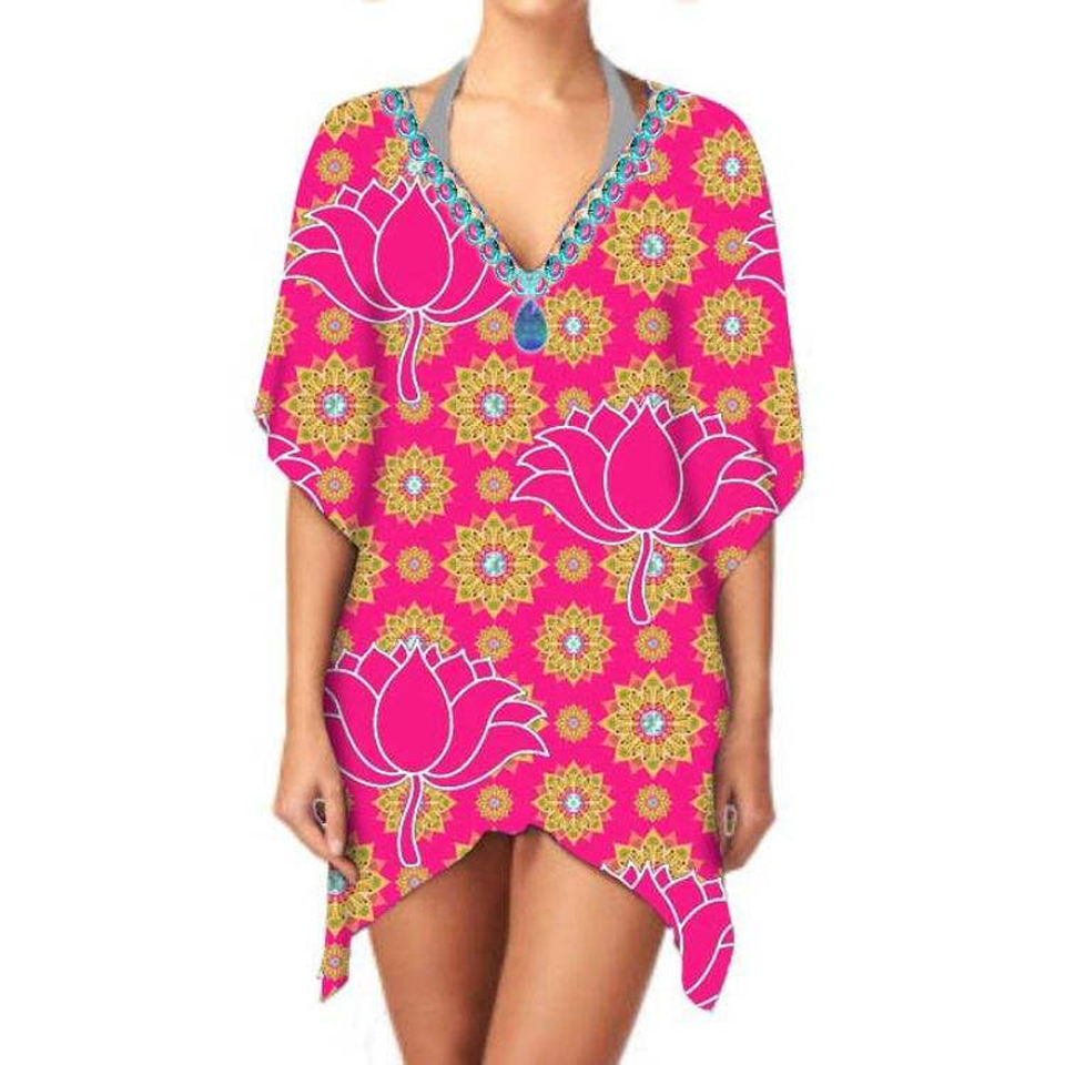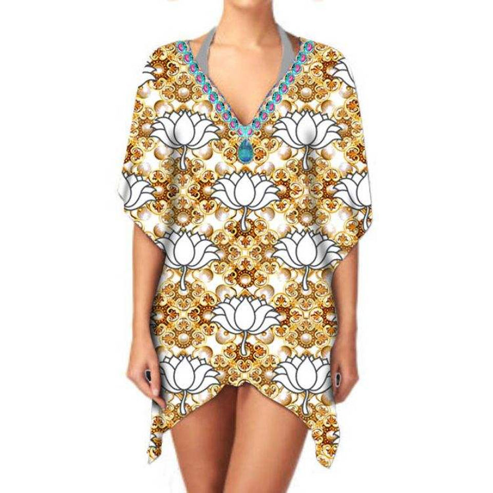 ชุดกิโมโนผ้าชีฟองสำหรับผู้หญิงแขนยาวผ้าชีฟองคอวีหรูหราพิมพ์ลายพื้นเมืองน้ำหนักเบามีสไตล์