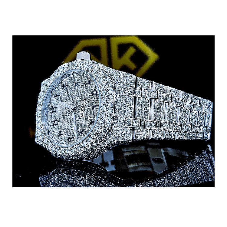 นาฬิกาข้อมือเพชรโมอิสซาไนต์คุณภาพสูงสุด หรูหรา กันน้ำได้ ระดับ VVS สำหรับทั้งชายและหญิง ตัวเรือนสแตนเลสสตีล ระบบอัตโนมัติ เครื่องสวิส