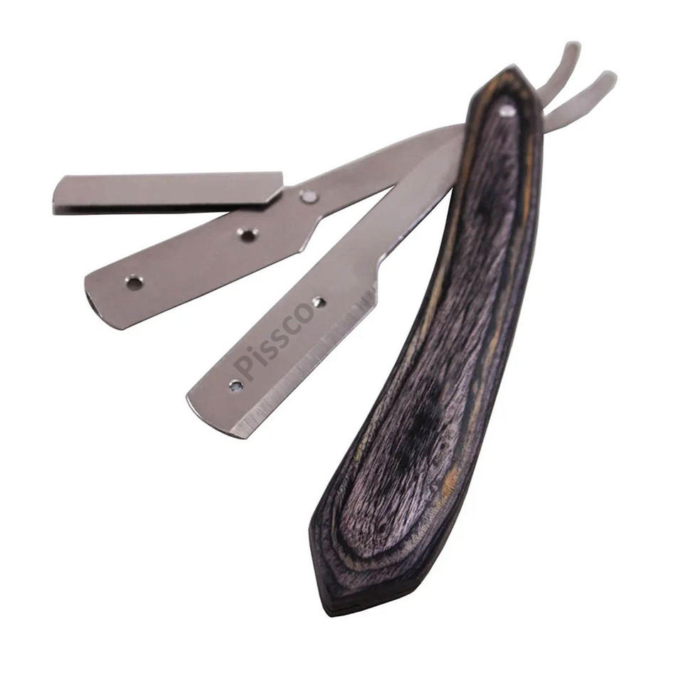 ผู้ผลิตและจำหน่ายมีดโกนคุณภาพสูง Pissco แบบตรง สำหรับช่างตัดผม มีดโกนแบบใช้แล้วทิ้งสำหรับร้านเสริมสวย พร้อมด้ามไม้สีดำ