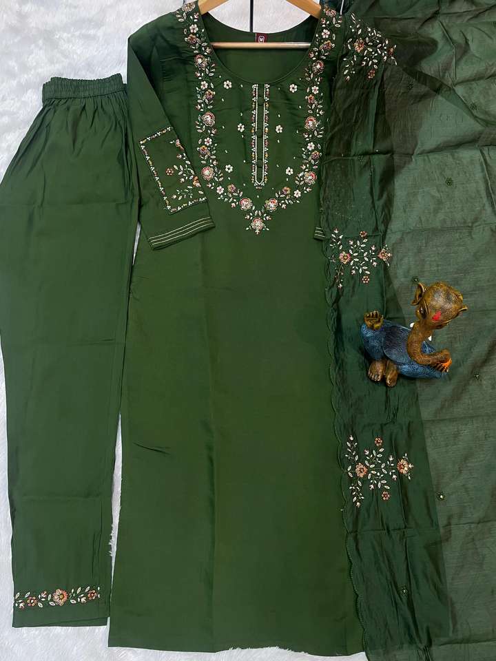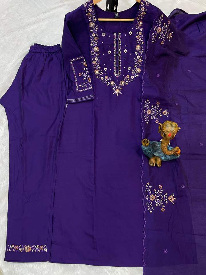 ชื่อผลิตภัณฑ์:ผ้าไหมมาริน่าพร้อมกางเกงปักด้ายและ dupatta