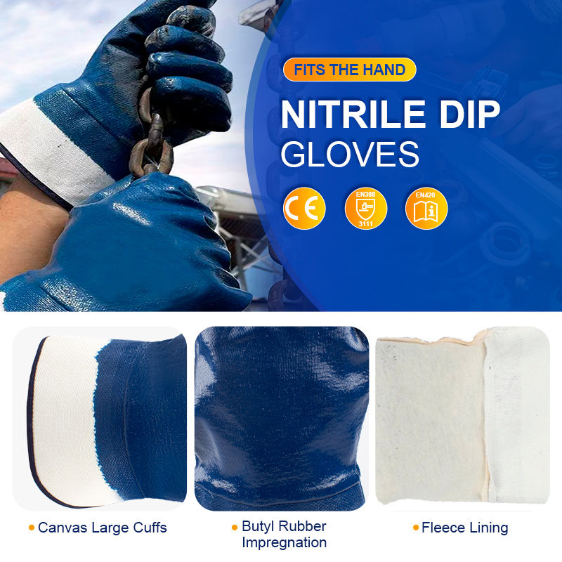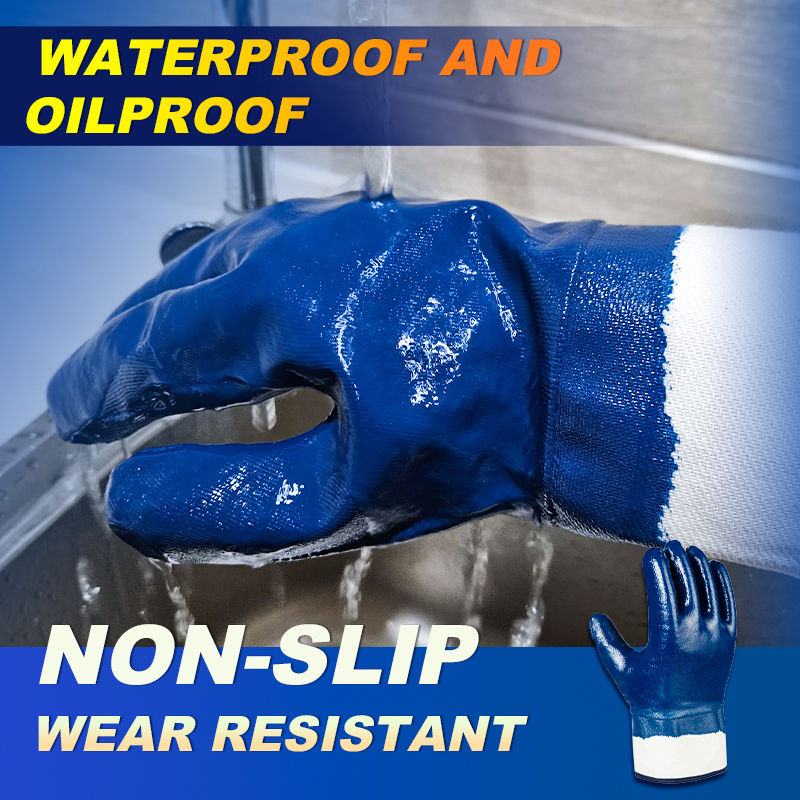 ถุงมือนิรภัยทนน้ำมันกันน้ำผ้าฝ้ายถุงมือทำงาน420ไนไตรล์เต็มรูปแบบ