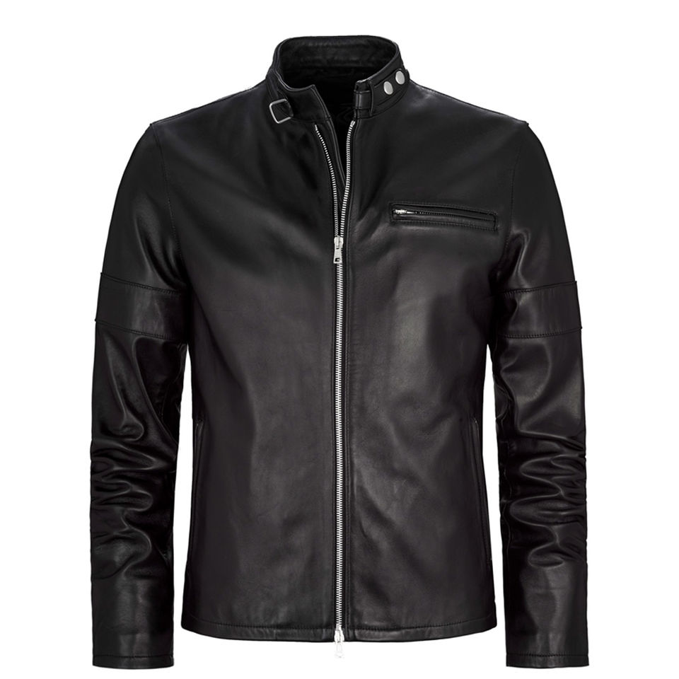 แจ็กเก็ตหนังแกะแท้สำหรับผู้ชายแจ็คเก็ตหนังสีน้ำตาลดำ
