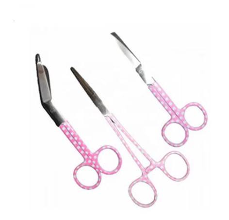 ชุดอุปกรณ์ผ่าตัดสำหรับพยาบาลและแพทย์กรรไกรมีด้ามจับพลาสติกผ้าพันแผลทางการแพทย์มีชั้นเชิง