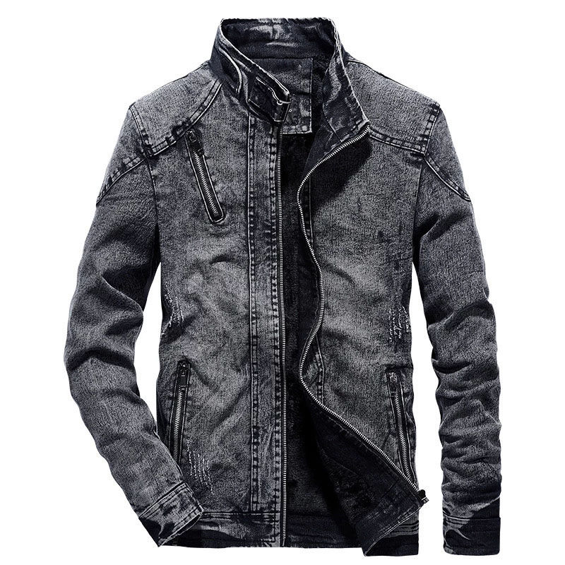 แจ็กเก็ตยีนส์มีกระดุมพิมพ์ลายสำหรับผู้ชายเสื้อแจ็กเก็ตยีนส์พิมพ์ลายตัวอักษรออกแบบได้ตามต้องการสำหรับผู้ชาย