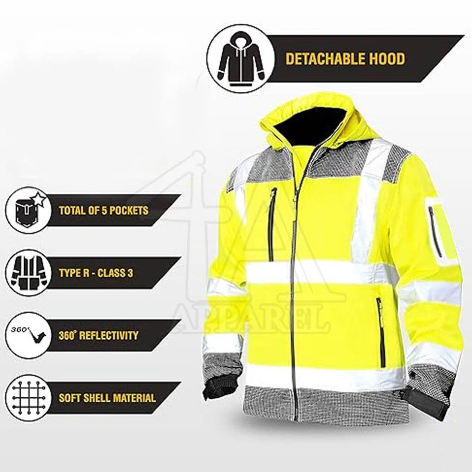 แจ็กเก็ตนิรภัยสำหรับผู้ชายที่มีไฮไลต์สะท้อนแสงและการออกแบบที่ทนทานสำหรับการทำงานประจำวัน