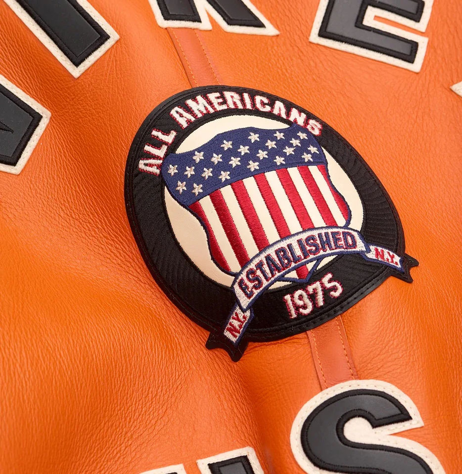 แจ็คเก็ตหนัง Avirex คุณภาพสูงสำหรับผู้ชาย แบบ Bomber Puffer ปกคอพับ สีส้ม หนังแกะ ขายส่ง