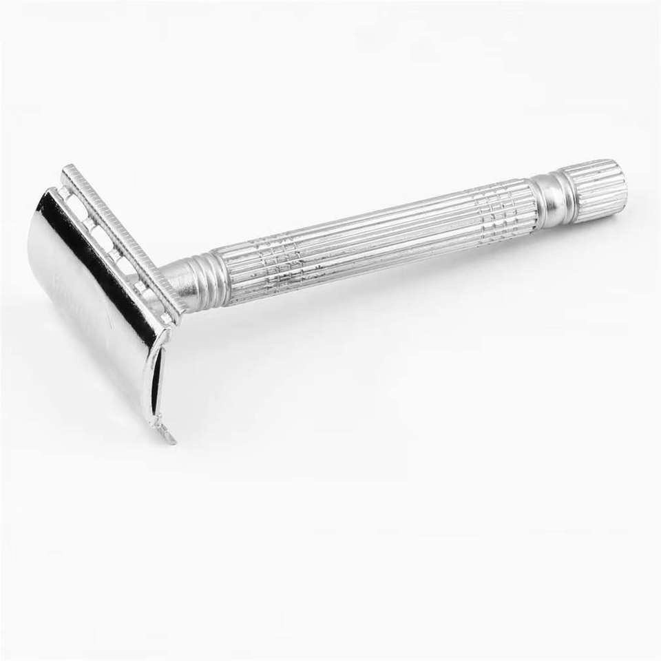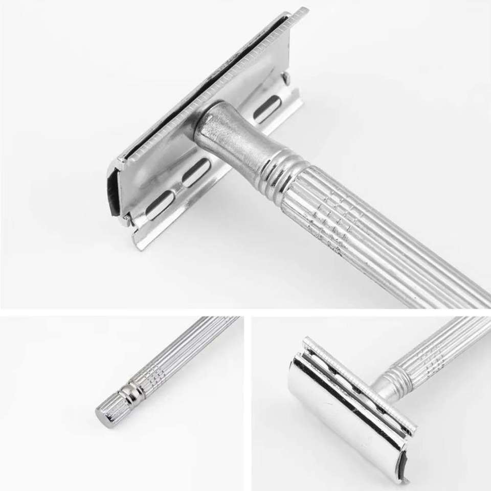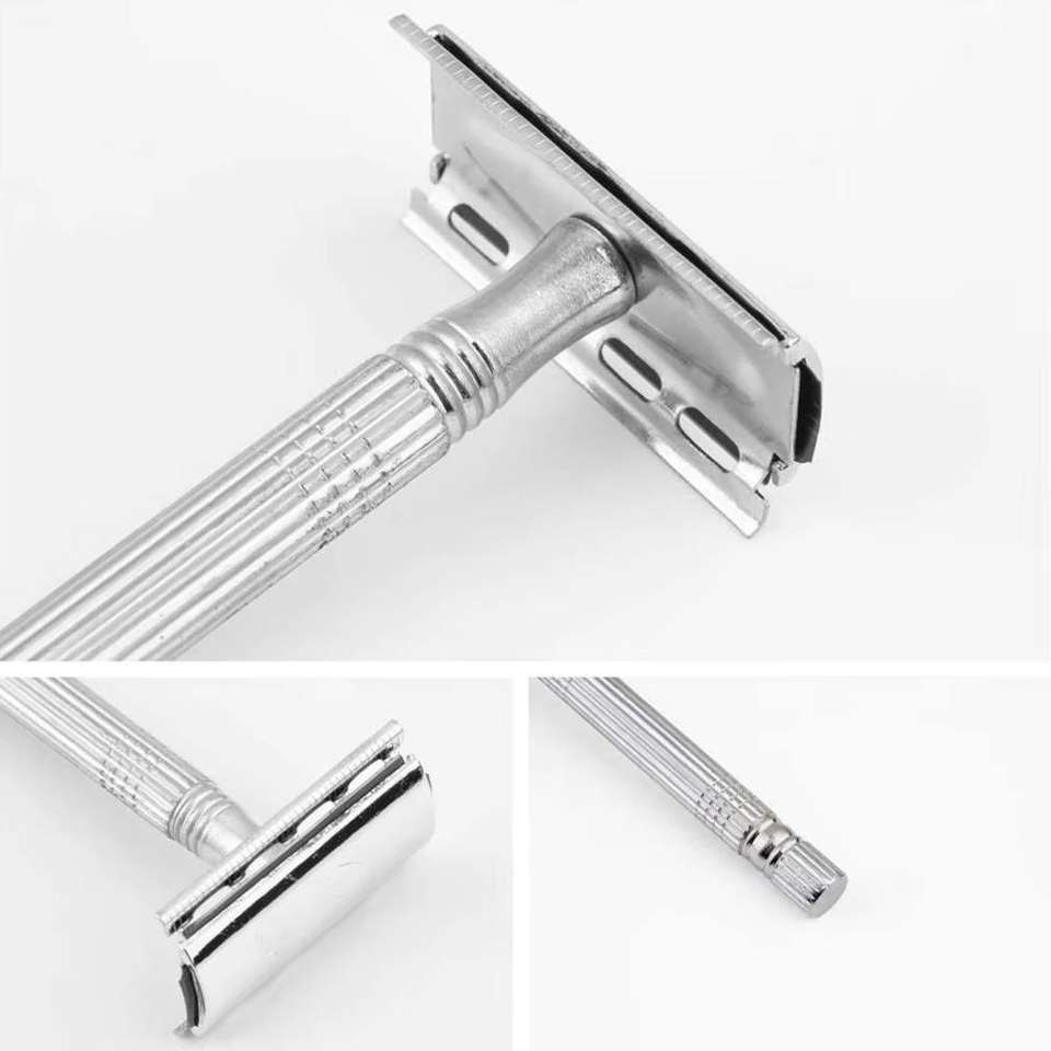 มีดโกนขนใต้วงแขนคุณภาพสูงสำหรับผู้ชาย ใบมีดสองคม โลหะเหล็ก ด้ามจับชุบโรสโกลด์ มีดโกนนิรภัย