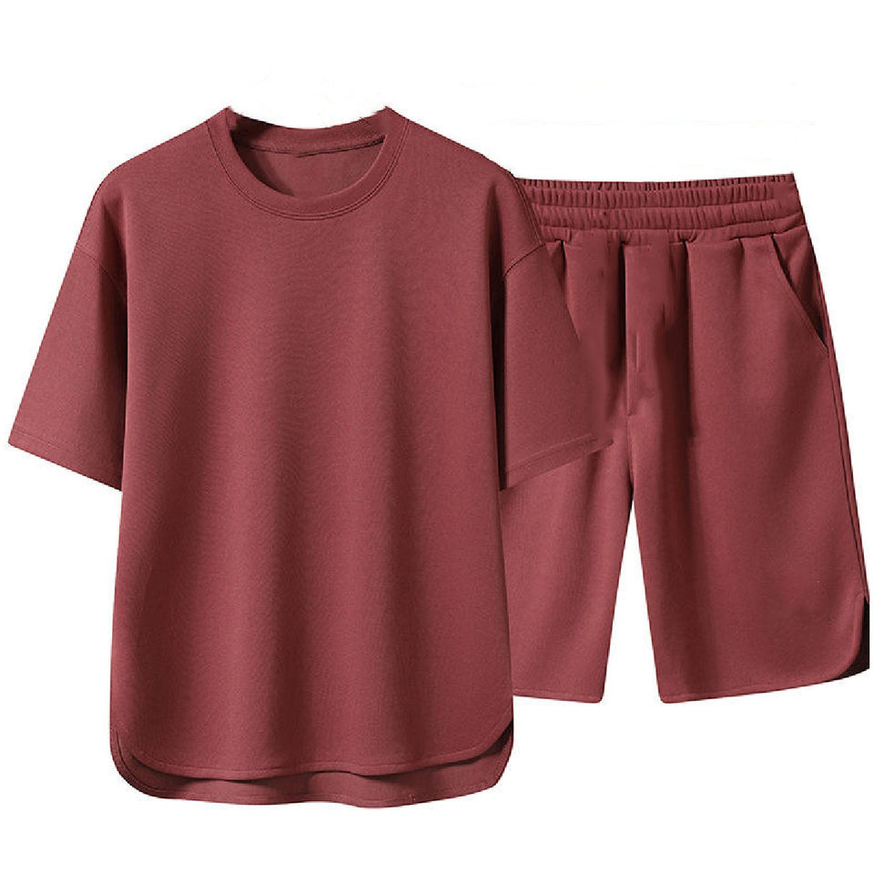 ชุดเสื้อยืดแขนสั้นและกางเกงขาสั้นผู้ชายคุณภาพสูง ผ้าฝ้าย 100% ระบายอากาศได้ดี เหมาะสำหรับฤดูร้อน ขายส่งเสื้อยืดแบบชุด