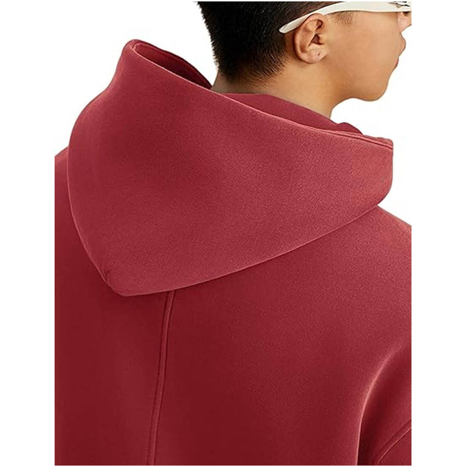 เสื้อสเวตเตอร์มีฮู้ดแบบสวมหัวผ้าฟลีซเปิดไหล่มีฮู้ดทรงหลวมโลโก้ออกแบบได้ตามต้องการมีกระเป๋า