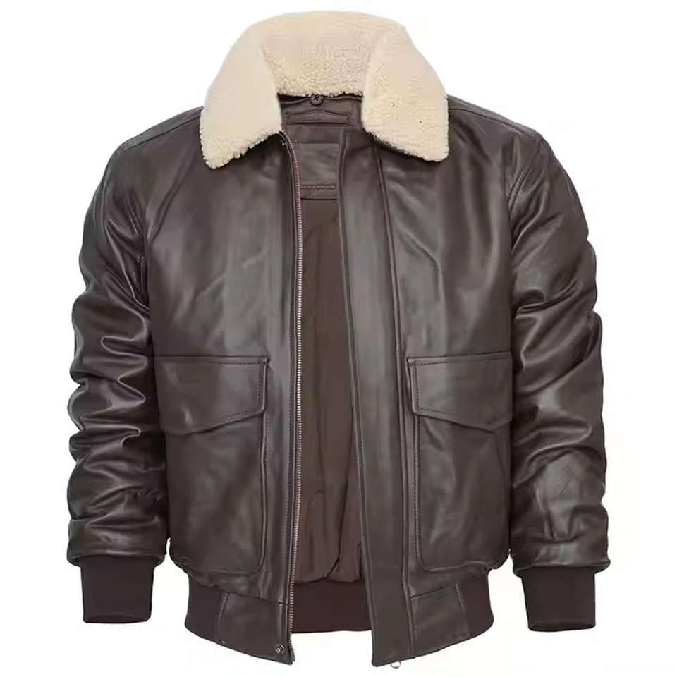 แจ็คเก็ตหนังแท้คุณภาพสูงสำหรับผู้ชาย แจ็คเก็ตบอมเบอร์สำหรับขี่มอเตอร์ไซค์ในฤดูหนาว หนังแกะแท้ 100% แจ็คเก็ตหนังขนแกะสำหรับผู้ชาย