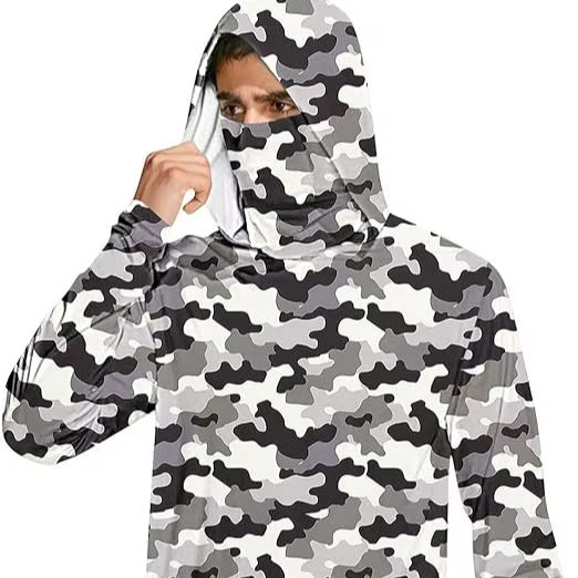เสื้อเชิ้ตสำหรับล่าสัตว์คุณภาพสูงสำหรับผู้ชาย มีฮู้ด ป้องกันแสงแดด UPF 50+ แขนยาว แบบสปอร์ต